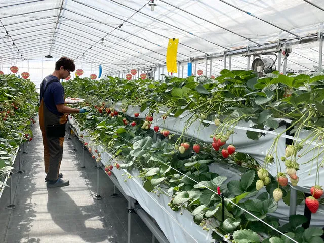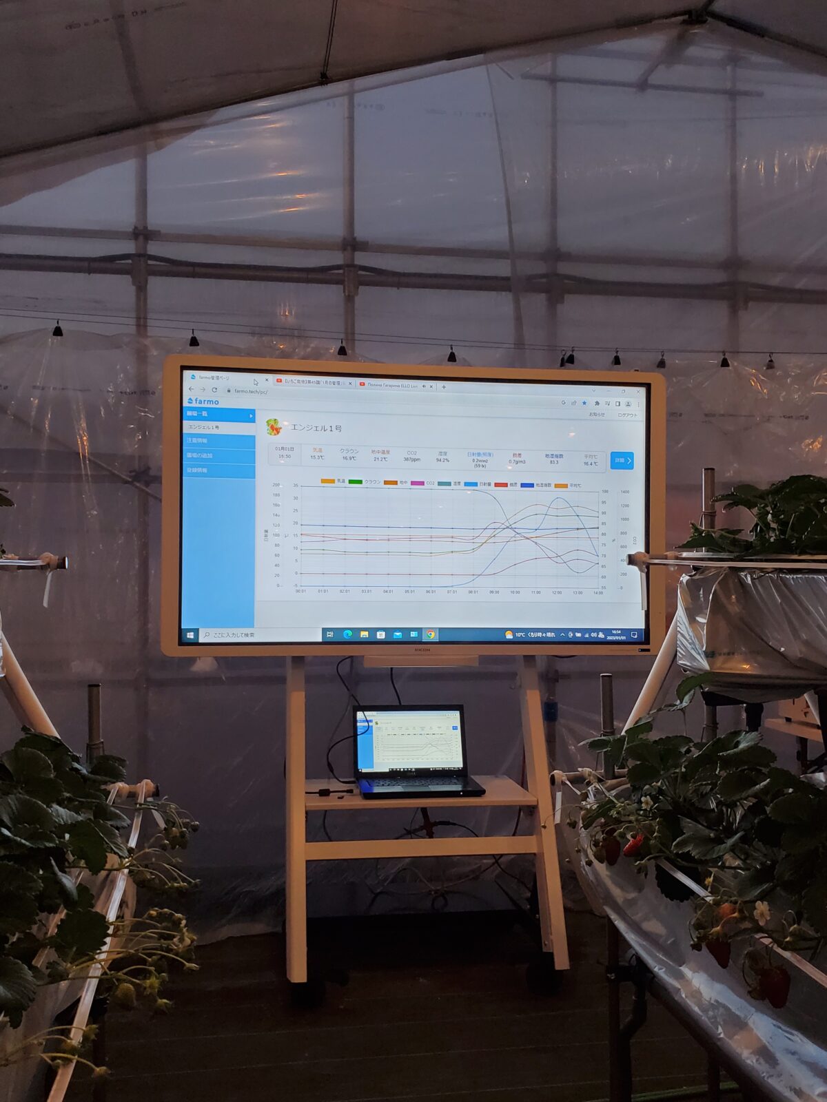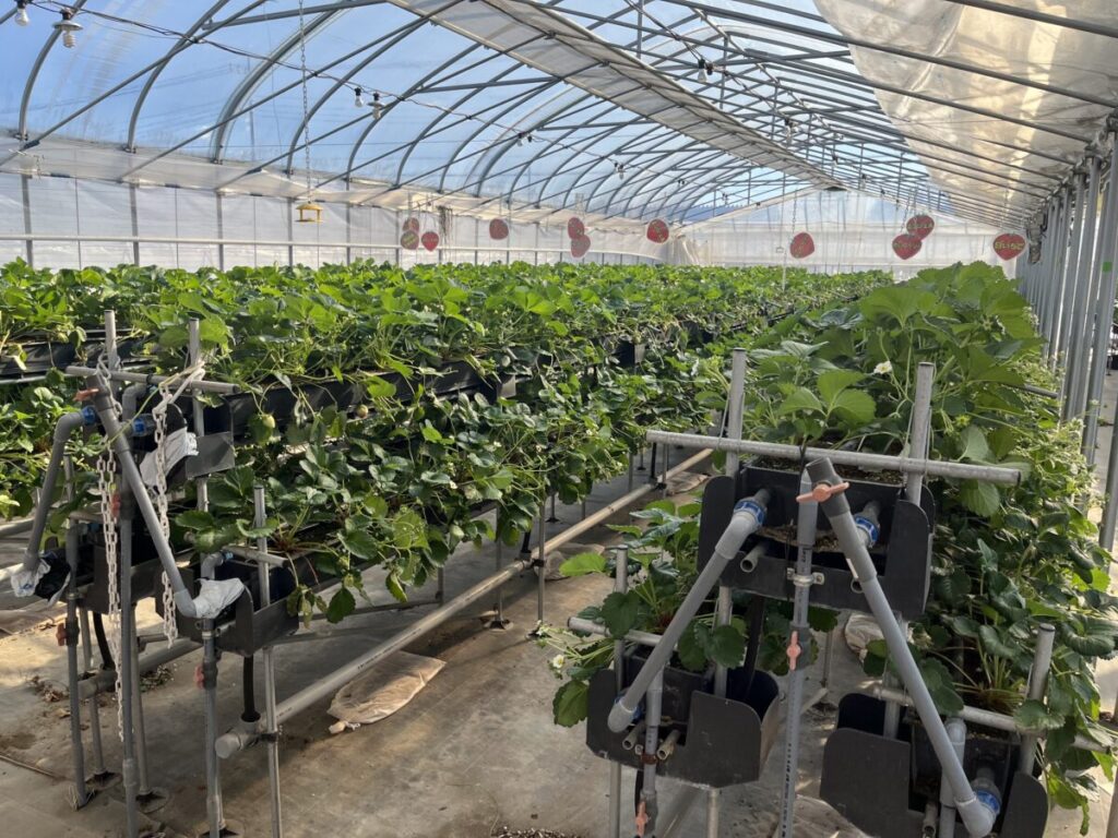 イチゴ栽培に最適な環境を維持するために、24時間イチゴハウスの環境をモニタリングし、美味しいイチゴができるハウス環境を調整・維持しています。